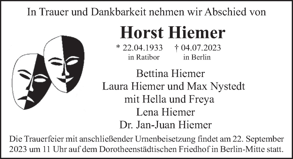 Hier finden Sie alle Traueranzeigen aus der Zeitung, die bisher für Horst Hiemer erschienen sind. Weitere Traueranzeigen, die in der Zeitung erscheinen, werden hier ebenfalls aufgelistet