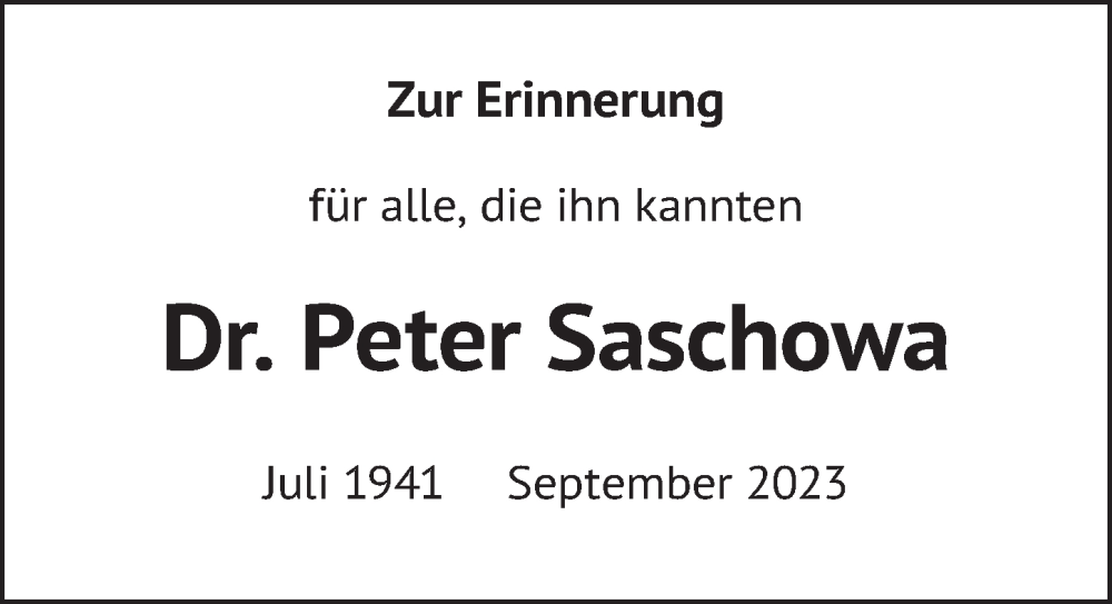Hier finden Sie alle Traueranzeigen aus der Zeitung, die bisher für Peter Saschowa erschienen sind. Weitere Traueranzeigen, die in der Zeitung erscheinen, werden hier ebenfalls aufgelistet