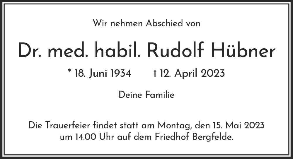 Hier finden Sie alle Traueranzeigen aus der Zeitung, die bisher für Rudolf Hübner erschienen sind. Weitere Traueranzeigen, die in der Zeitung erscheinen, werden hier ebenfalls aufgelistet