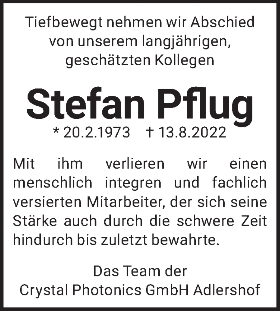 Hier finden Sie alle Traueranzeigen aus der Zeitung, die bisher für Stefan Pflug erschienen sind. Weitere Traueranzeigen, die in der Zeitung erscheinen, werden hier ebenfalls aufgelistet
