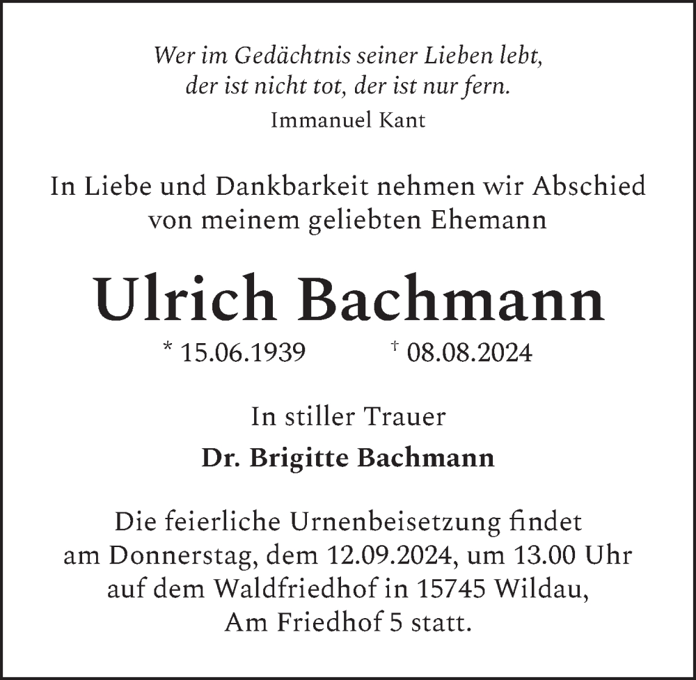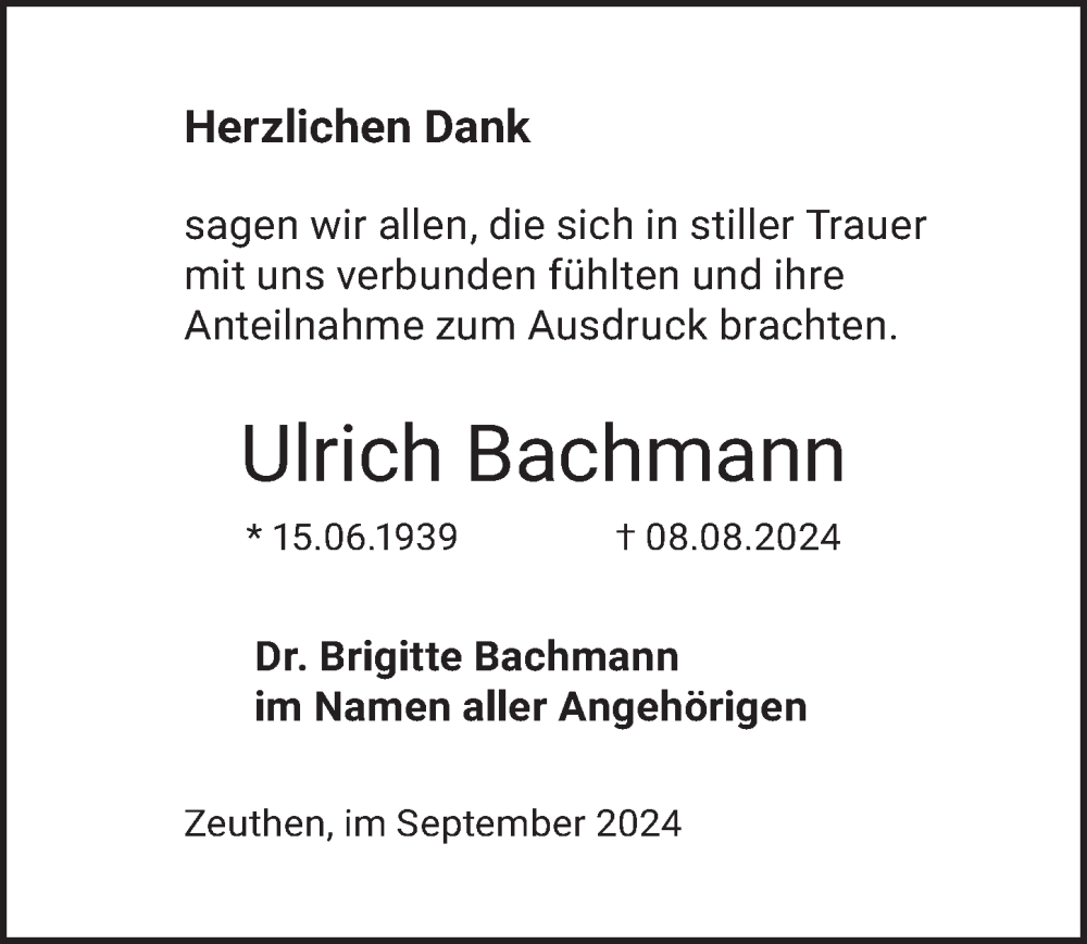 Hier finden Sie alle Traueranzeigen aus der Zeitung, die bisher für Ulrich Bachmann erschienen sind. Weitere Traueranzeigen, die in der Zeitung erscheinen, werden hier ebenfalls aufgelistet